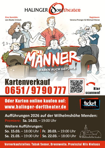 Karten gibt es online im Vorverkauf ab jetzt unter: www.ticket-regional.de/halinger-dorftheater